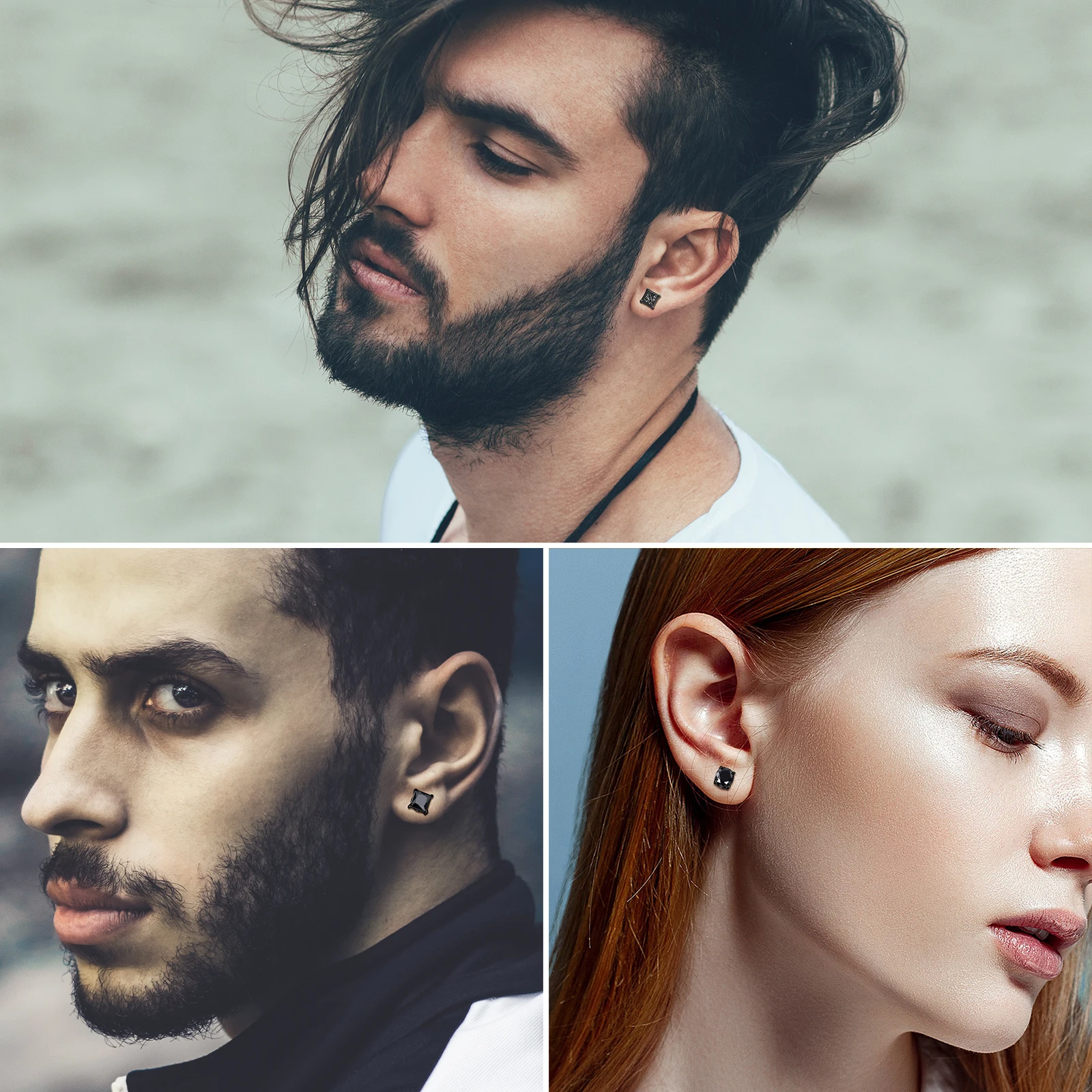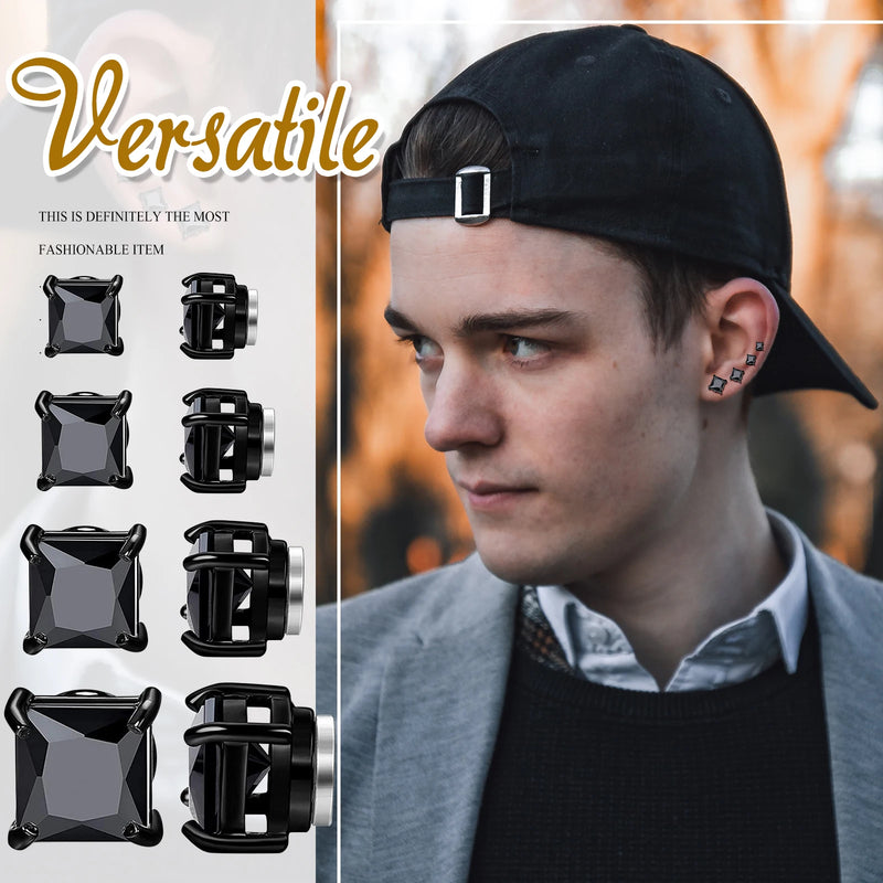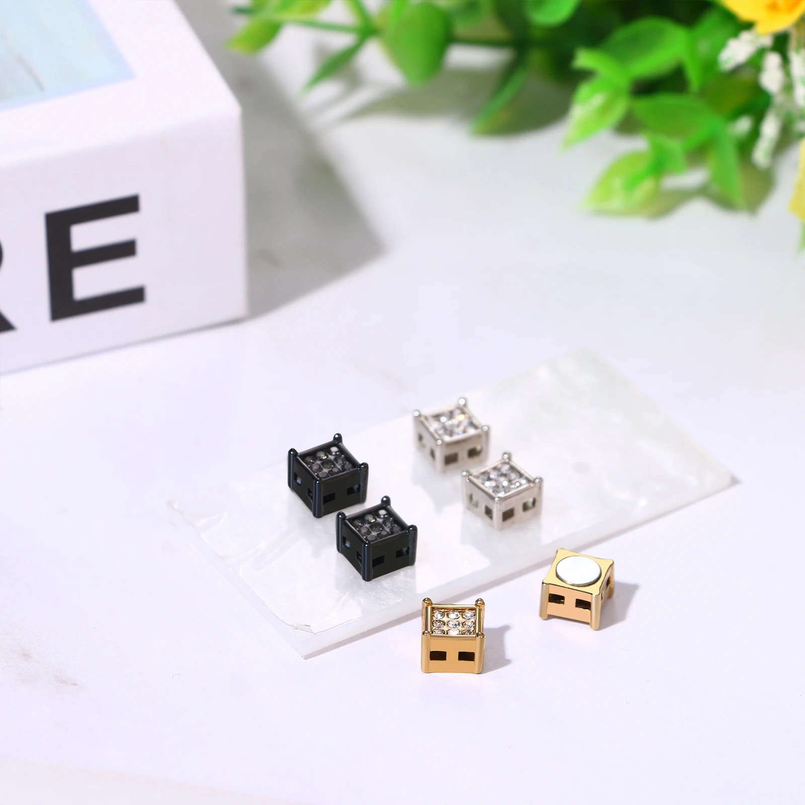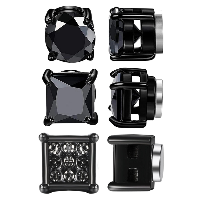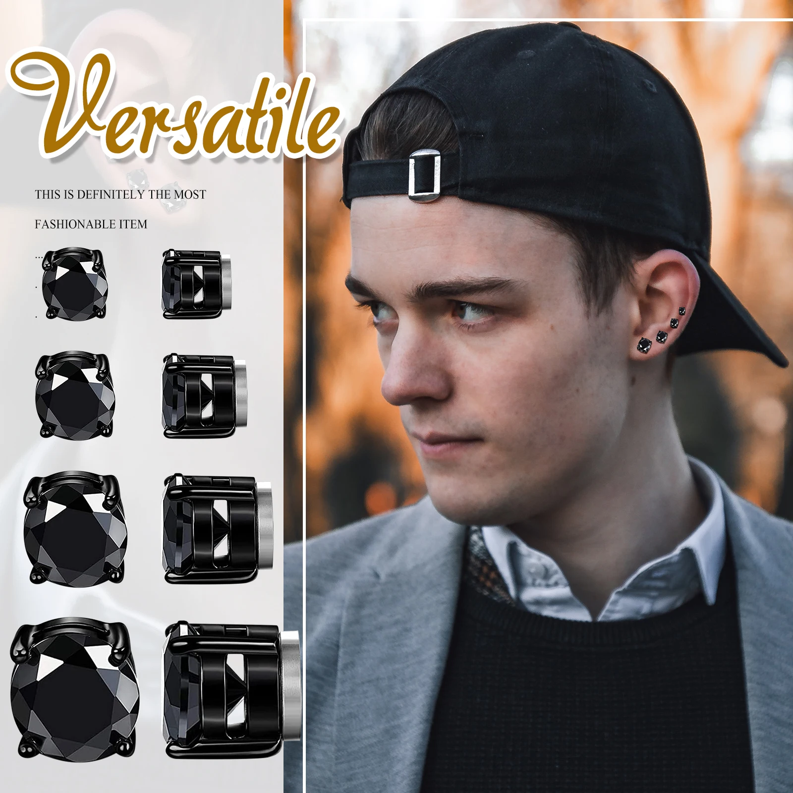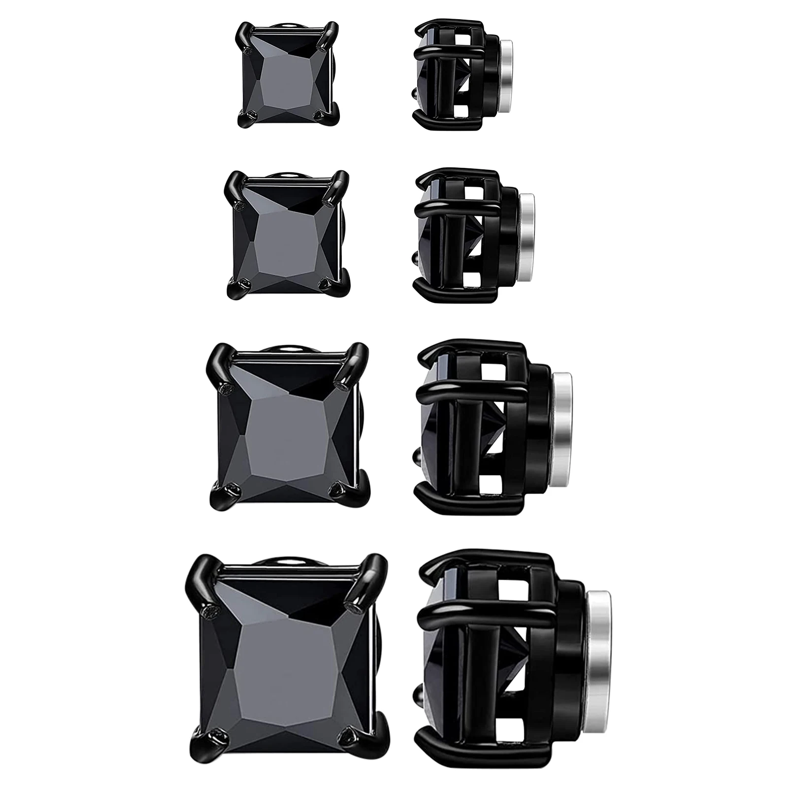 BONISKISS 4 pairs of Neutral Magnetic Stud Earrings Hypoallergenic Stainless Steel Cubic Zircon Clip Earrings Women Jewelry