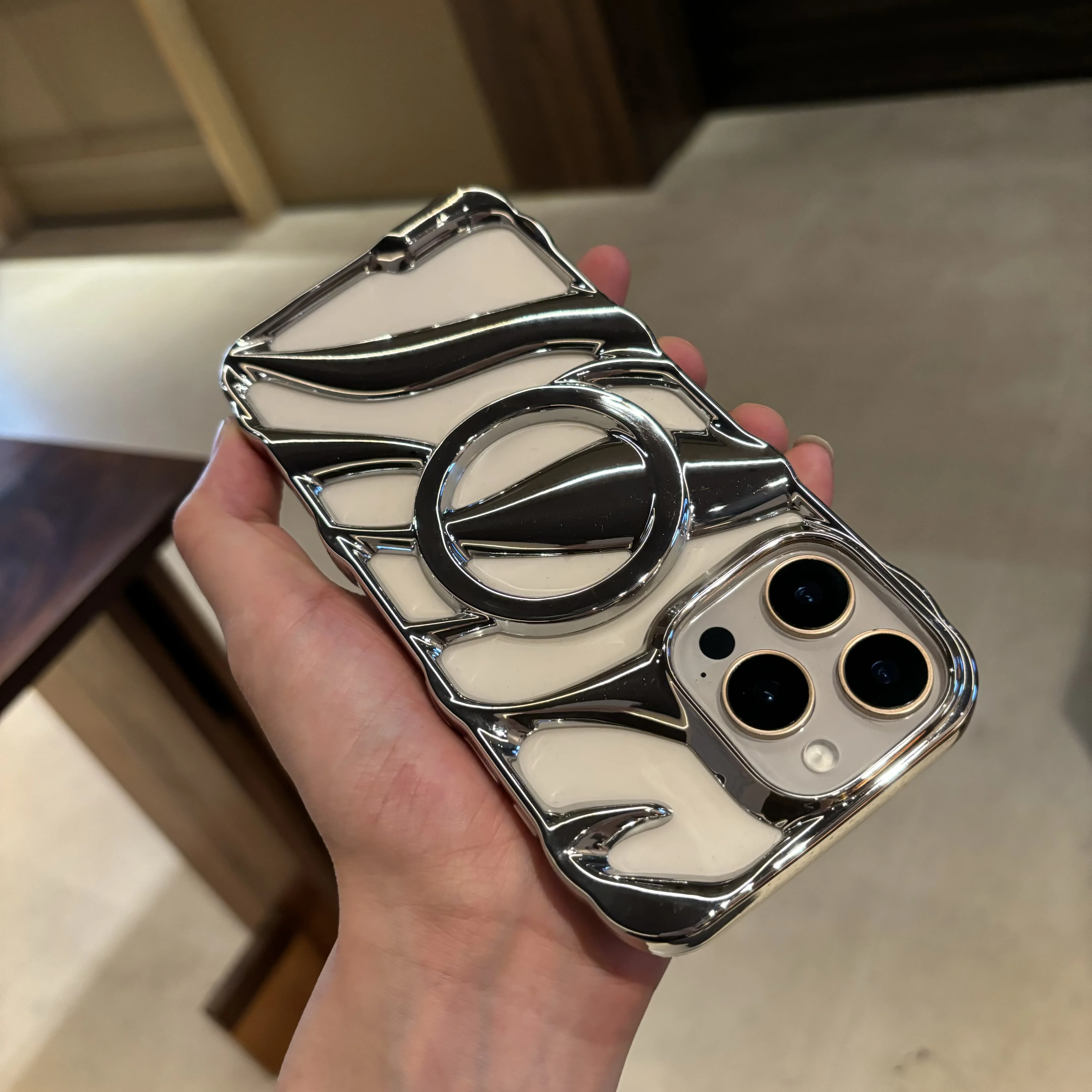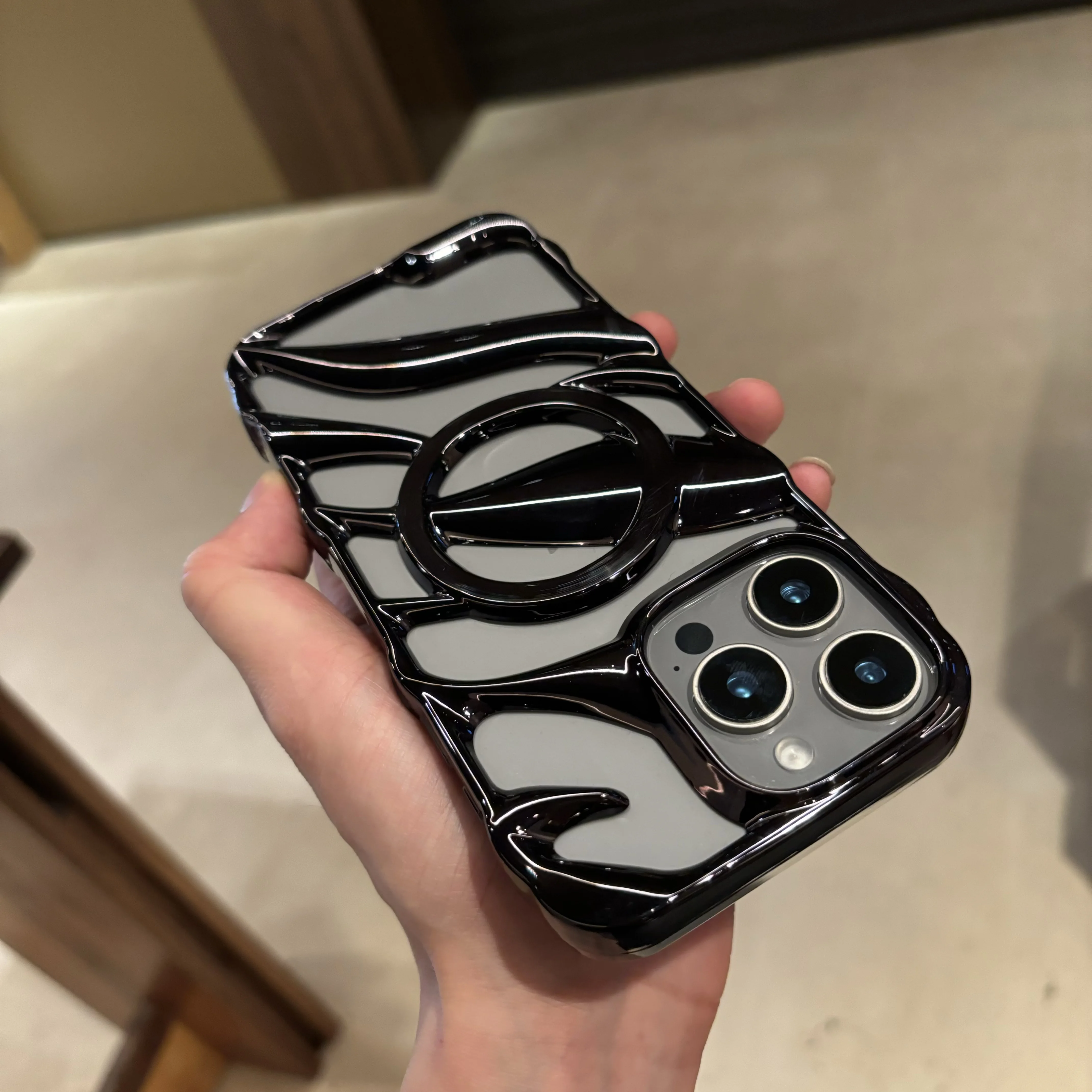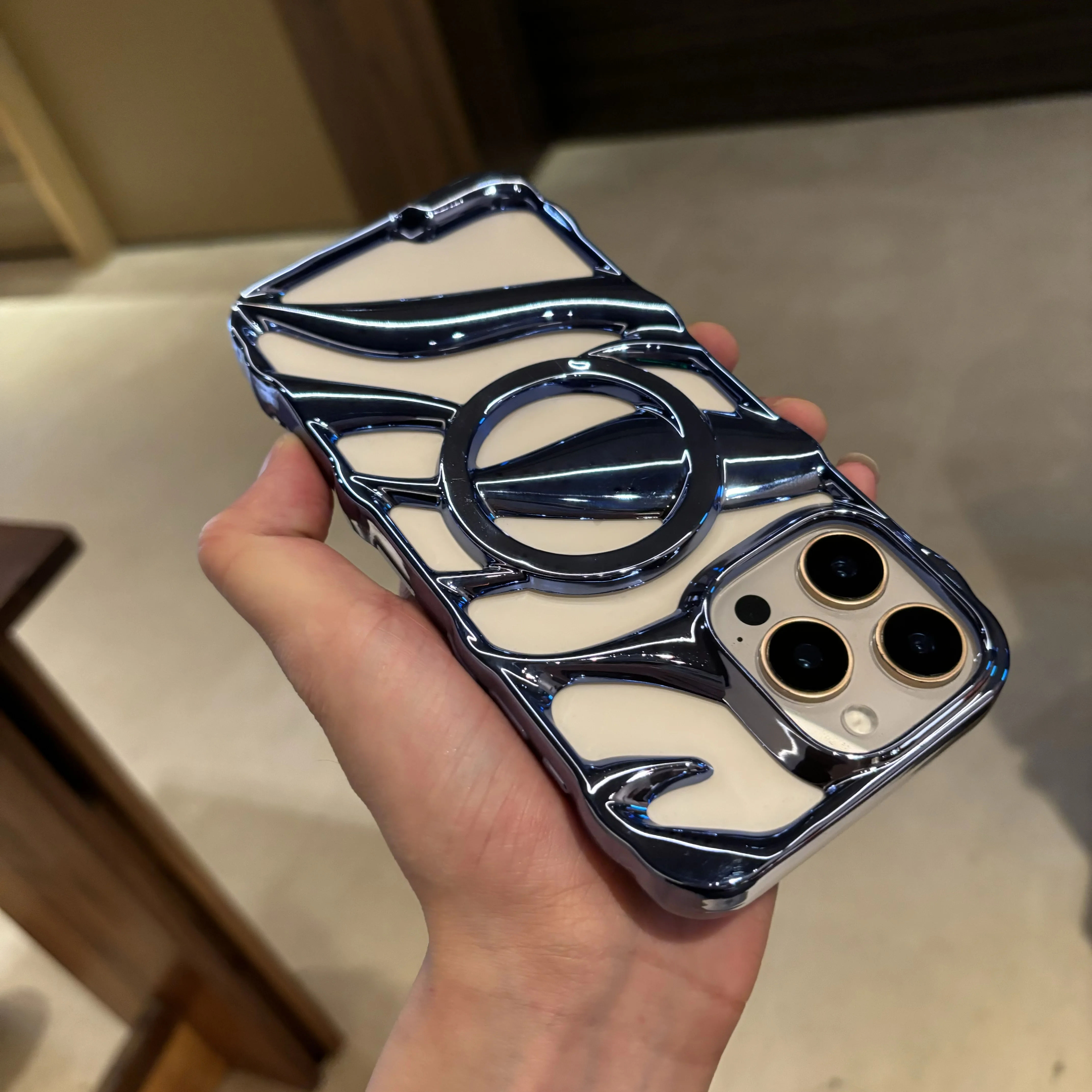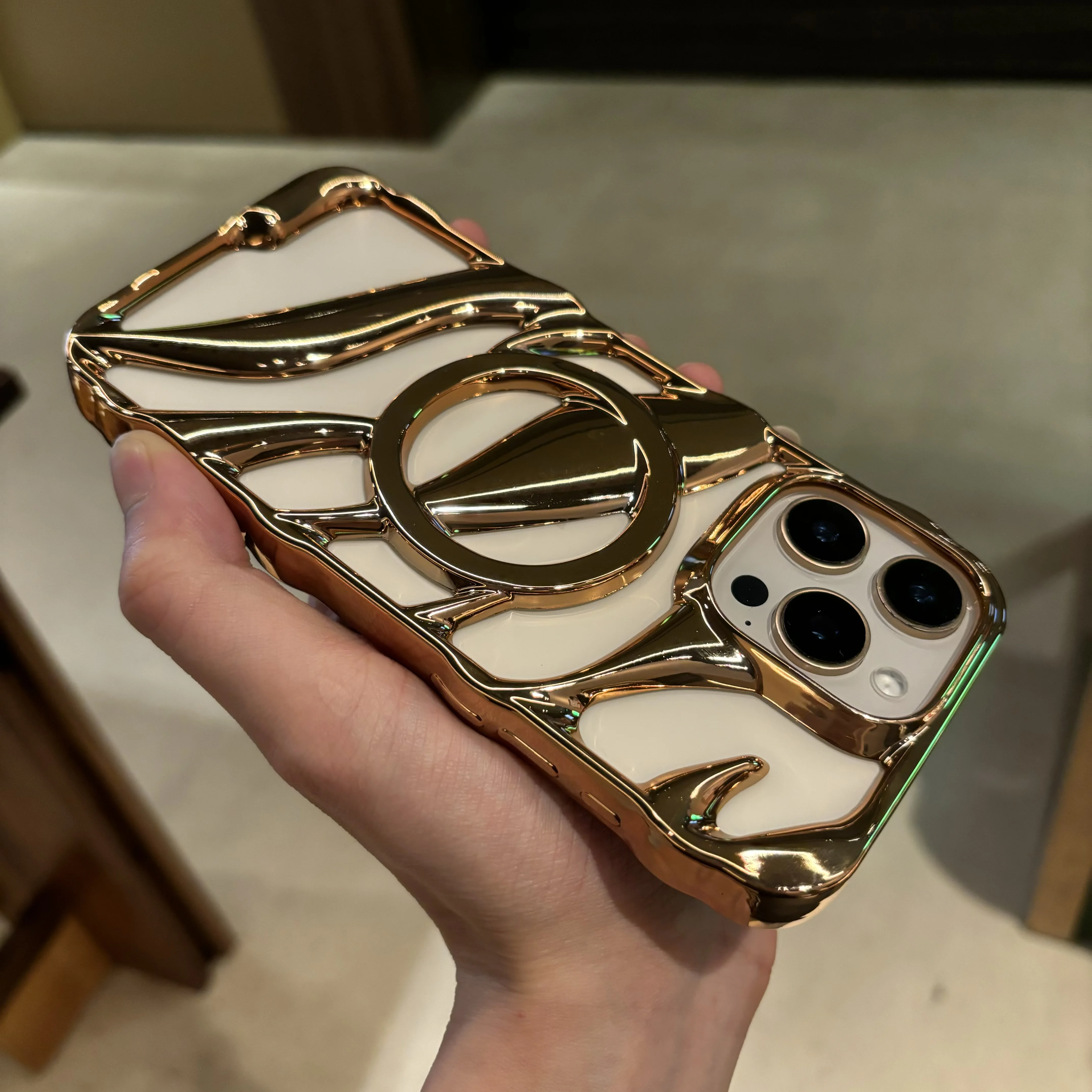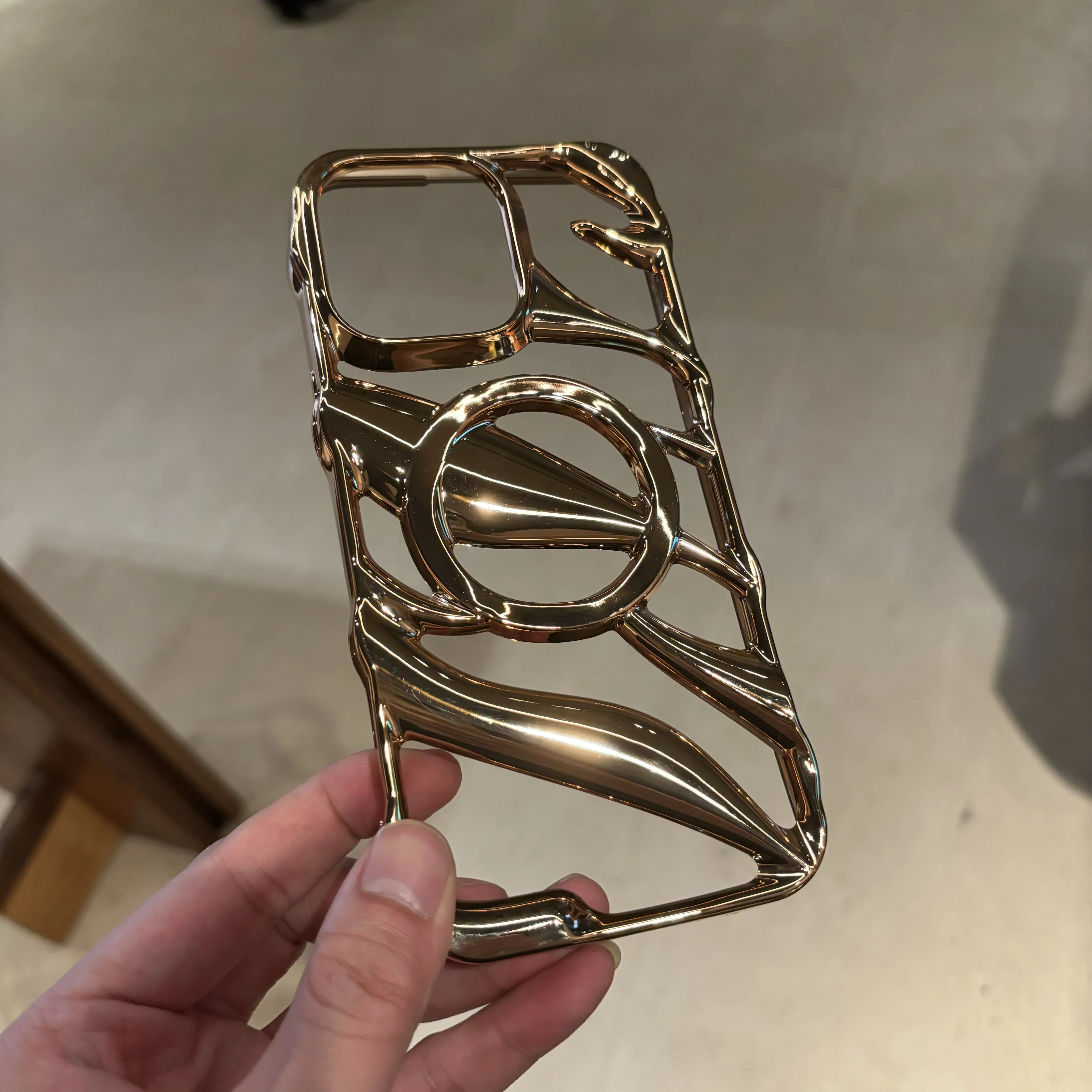 Effortlessly charge your iPhone with the Luxury Plating Hollow Cooling Phone Wireless Charging TPU phone case.. Featuring MagSafe technology, this charger provides a fast and secure wireless charging experience. Say goodbye to messy cords and hello to convenient, efficient charging.
