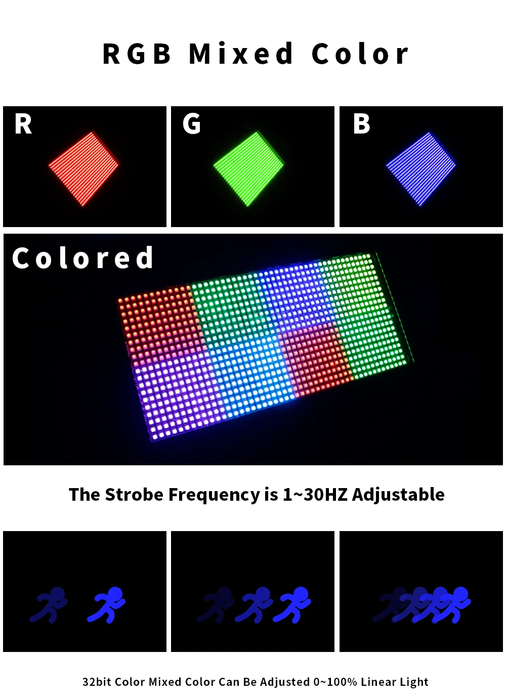 Dimming: 32bit, 0- 100% Linear Dimming