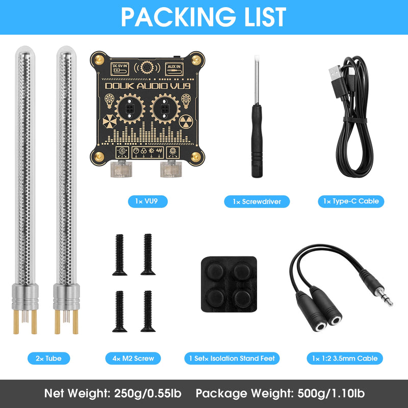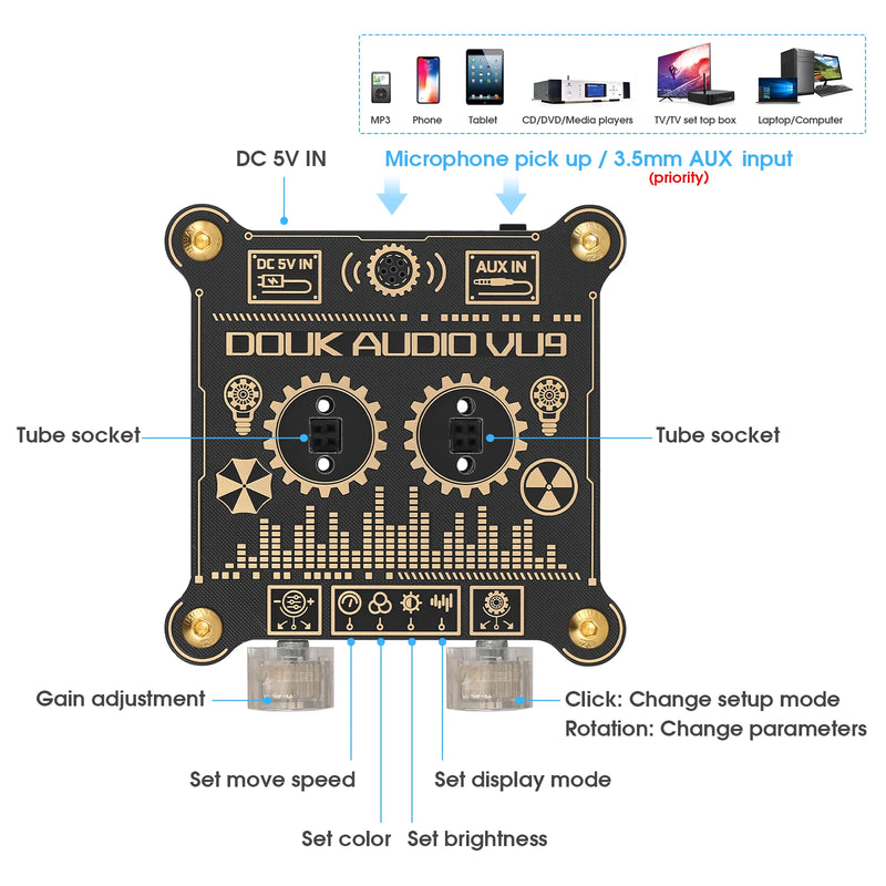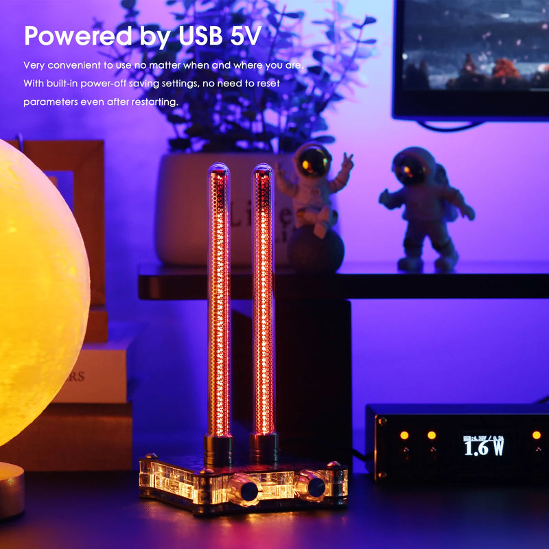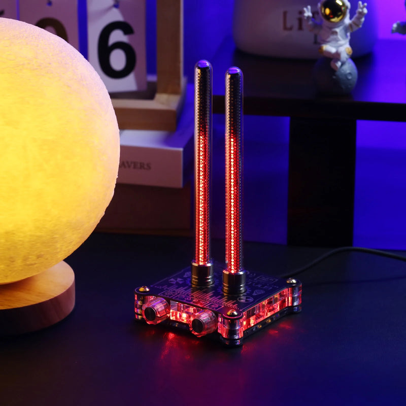 • Simulated tubes, VU tubes adopt unique LED beads and glass tubes to recreate the sense of retro and mystery. Compared to nixie tubes, the VU tube not only achieves the same effects but also with a lower and safer working voltage (DC 5V), a longer service life, and a significantly lower price.